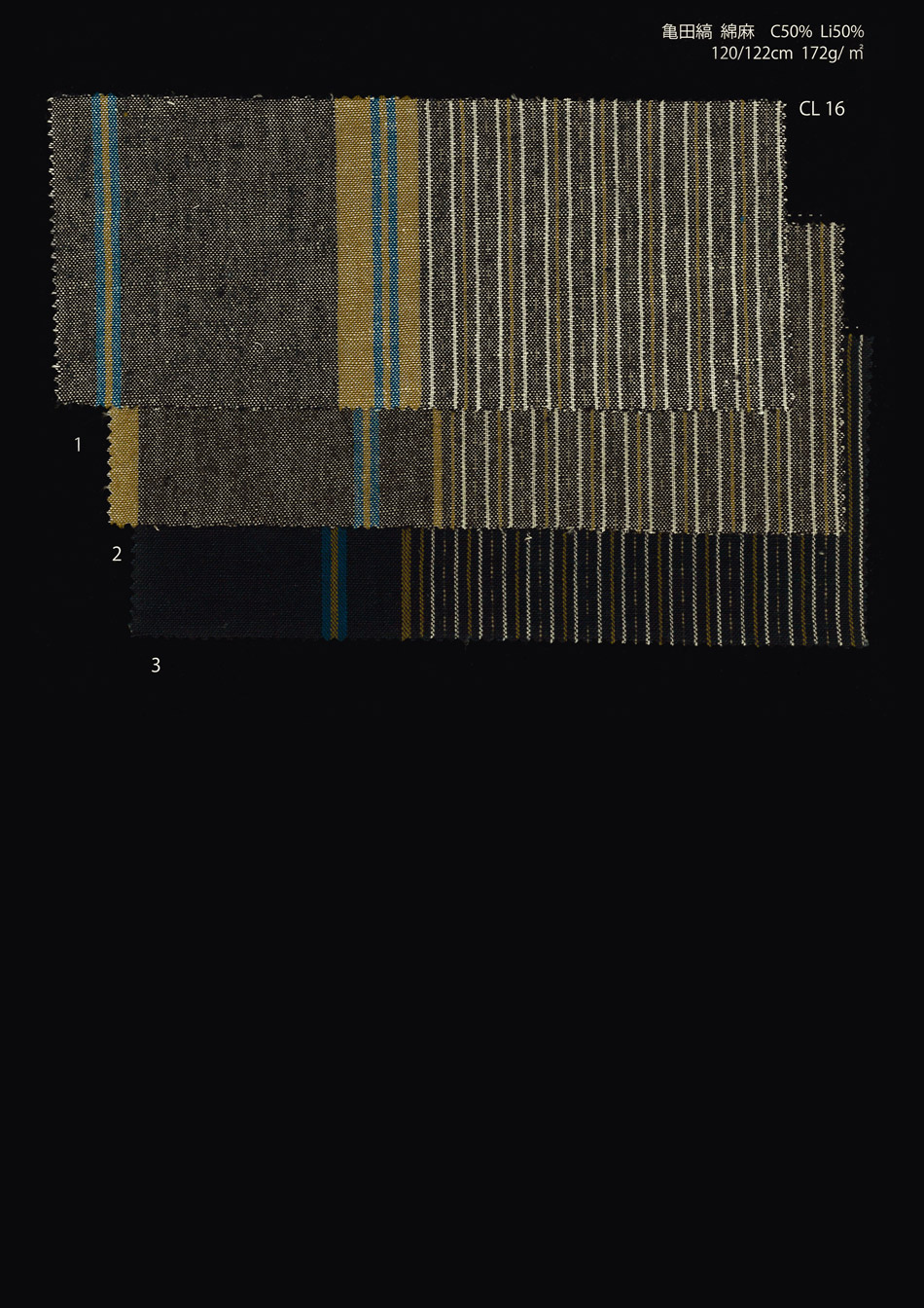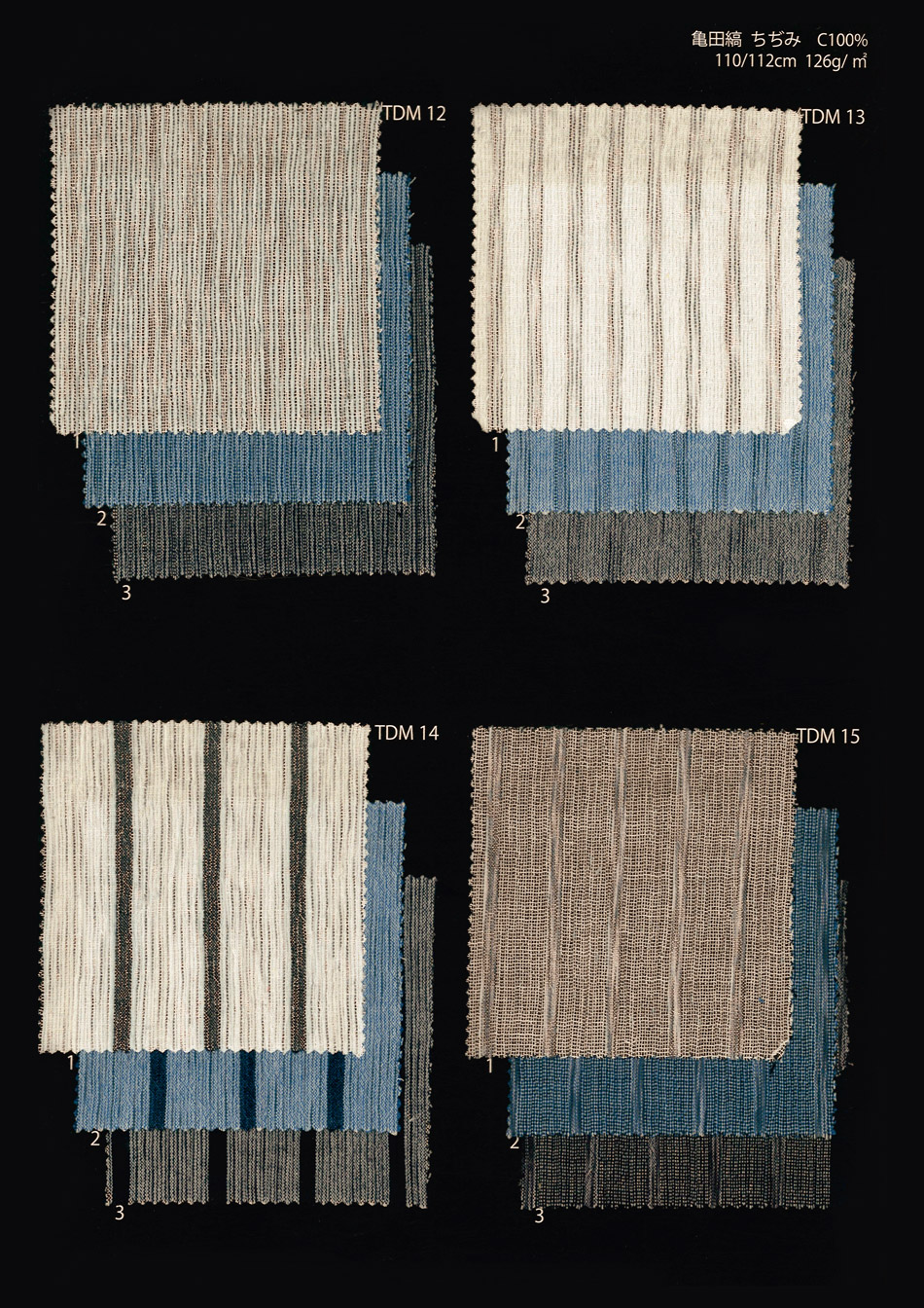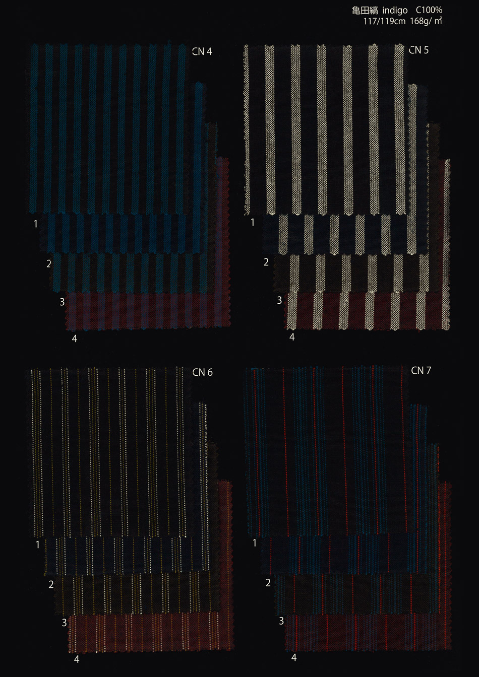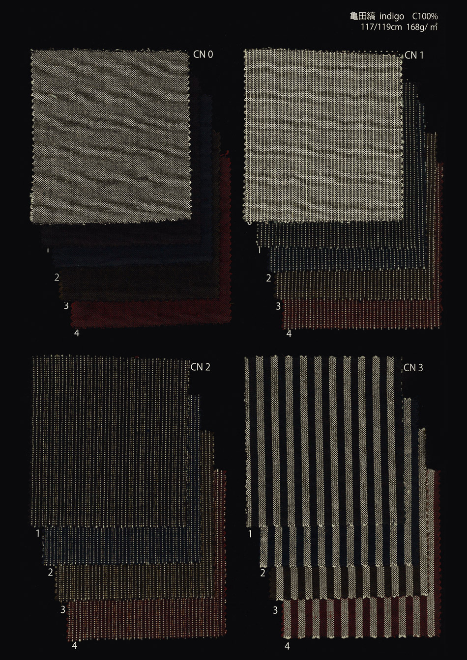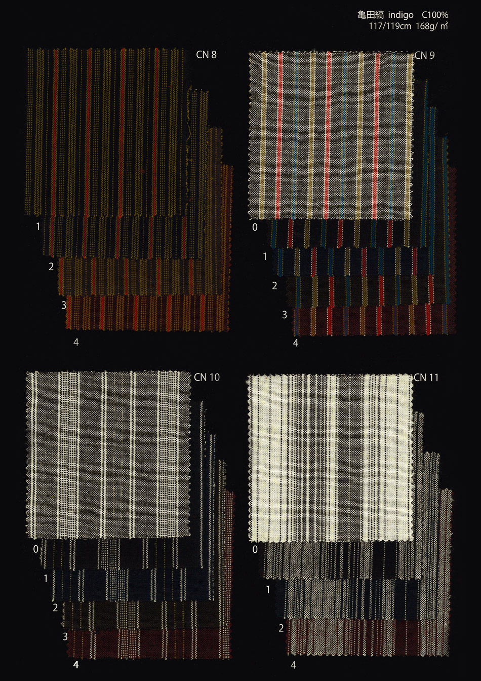 Kamedajima fabric woven by Nakaei. It's interwoven politely, so it becomes so flexible that it's washed. Cotton100% | ¥2,200(tax included)/m “Chijimi” Fabric shrunke | ¥1,980(tax included)/m Cotton50%・Hempen50% | ¥2,860(tax included)/m Thin cloth | ¥1,870(tax included)/m Double gauze | ¥1,870(tax included)/m